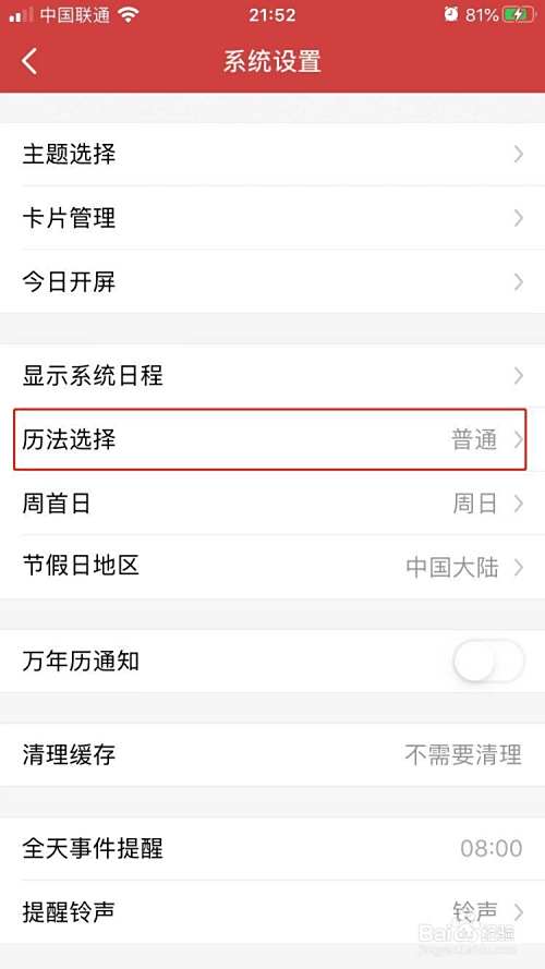 5.点击历法选择