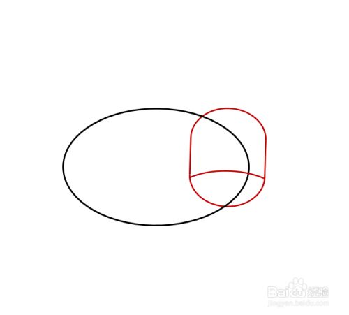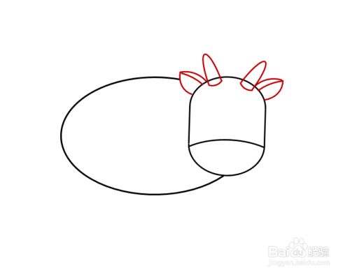 在椭圆的右侧画奶牛的头部轮廓,头部由两个半圆形和两根直线组成的的形状构成。