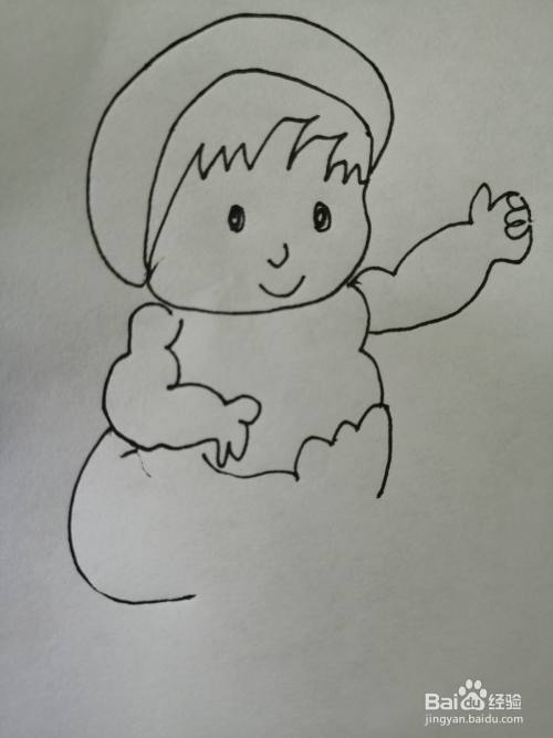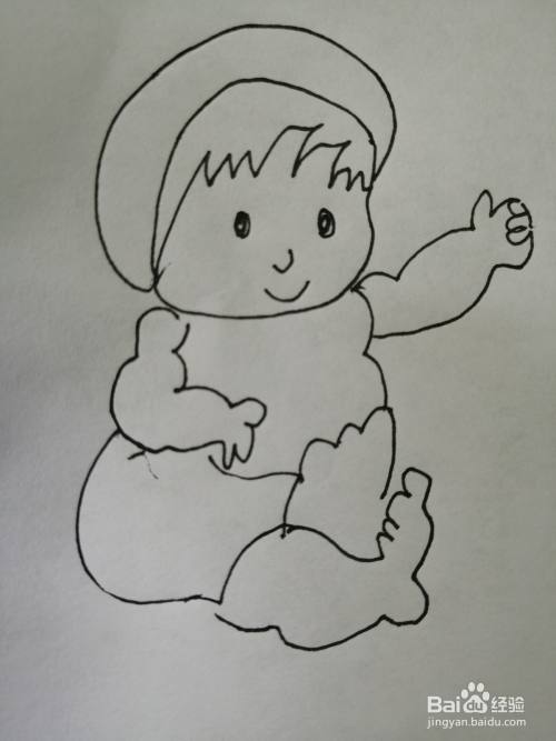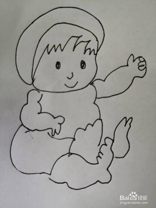 第七步,最后把可爱的小婴儿的另外一条腿也画出来。可爱的小婴儿就画好了。