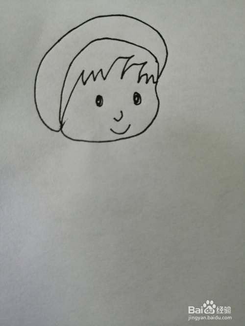 第一步,我们先把可爱的小婴儿的头画出来,注意小婴儿头顶帽子的画法。