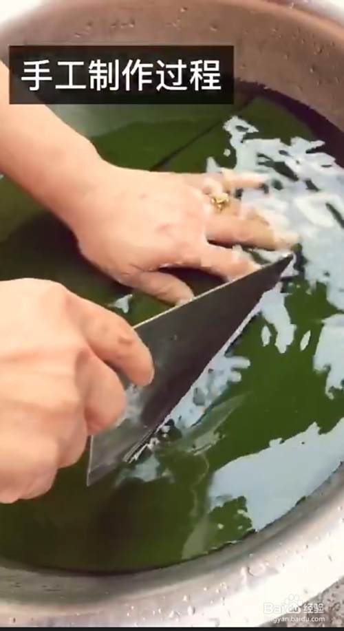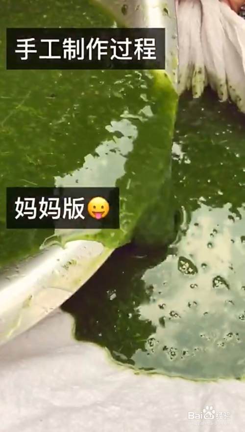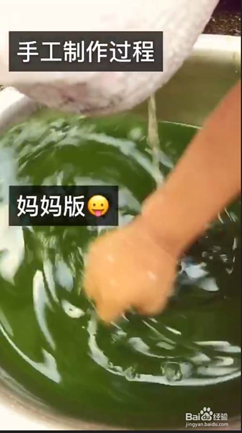点草木灰。准备一碗草木灰,就是烧柴火的地灰,农村都有的,没有的既可用碱水替代,过滤草木灰,我们是直接用纱布来过滤。边加水(大概2碗水)过滤边搅拌汁液。