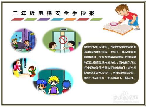 在【三年级电梯安全手抄报】标题的右侧处,画出画面丰富内容,如下图所示。