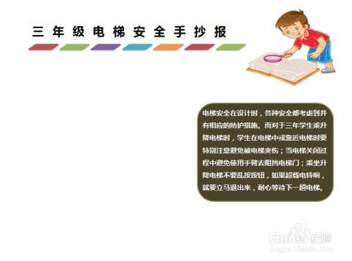 在【三年级电梯安全手抄报】标题的下方右侧处,在框内写上字,如下图所示。