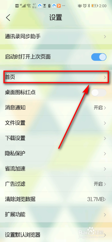 4、点击首页。