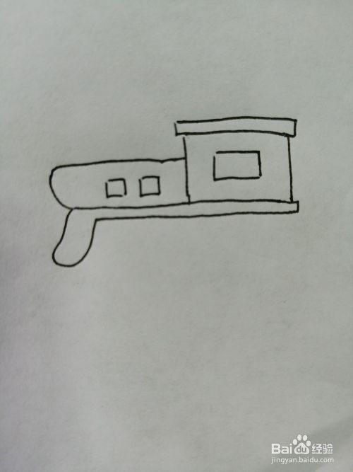 第二步,接着画出简笔画火车的上面部分,一个长方形和一个更高一些的长方形。