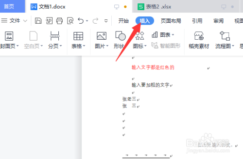 wps中打开文档,点击“插入”