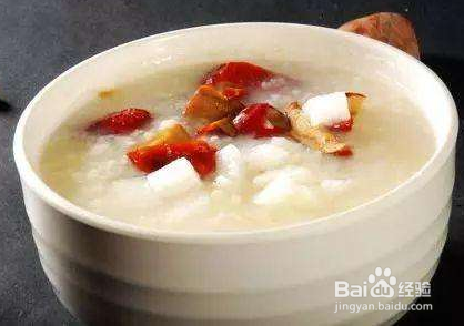 红枣山药粥。这种粥加入的食材更广泛一些,多了红枣、煮粥时候用粳米。同时还加入白糖。用小火熬制,直到米粥黏软为止。