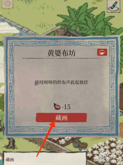 在江南百景图游戏中,如何找到黄婆布坊,并在黄婆布坊内藏画?展示如下。