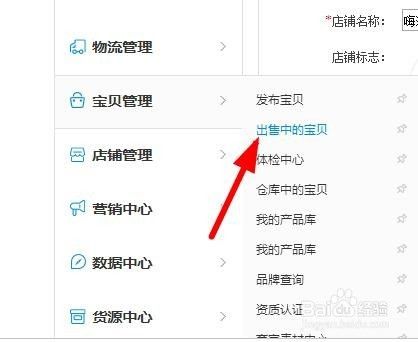 在“宝贝管理”的选项中,找到“出售中的宝贝”第二个选项,点击进去