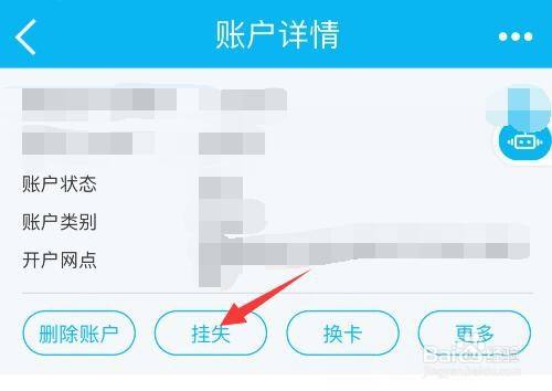 在使用手机时点击建设银行,进入页面点击账户,打开详情,点击挂失