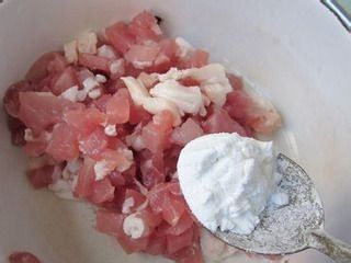 食材:大白菜 猪肉 酱油 葱花 姜末 玉米淀粉
