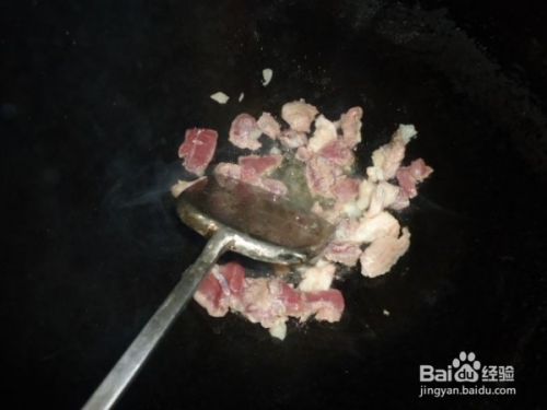 锅内加植物油,温热的时候放入肉片,炒至肉片变白,加酱油提色。