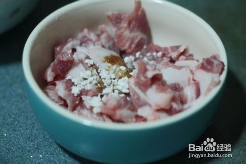 将肉片放进碗里,加酱油、葱花、姜末,拌匀至看不到汁,加入玉米淀粉拌匀,腌3分钟,这样处理的肉鲜嫩。