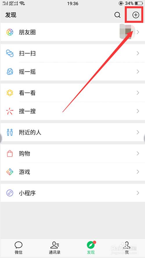 首先我们要做的第一步就是,点击我们手机里的“微信”软件,点击我们右上角的加号“+”