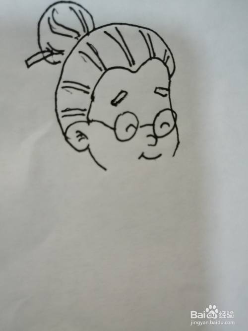 第二步,接着画出老奶奶的慈祥的两条眉毛。