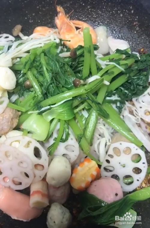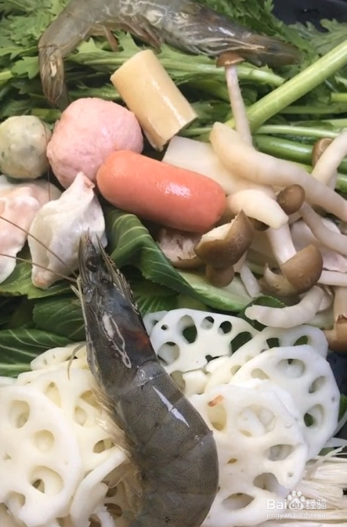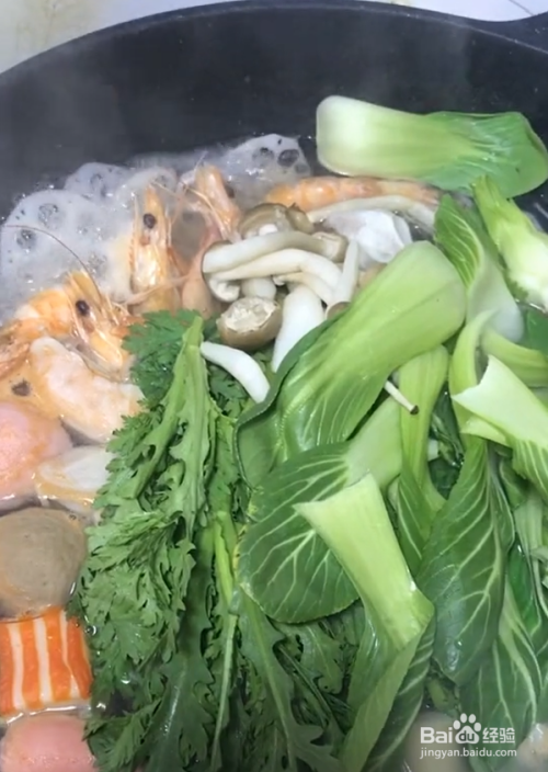 选择自己喜欢吃的配菜:青菜,海鲜,火锅丸子等