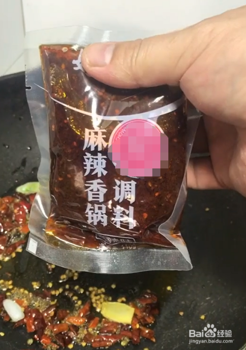 放入麻辣香锅料,炒香。
