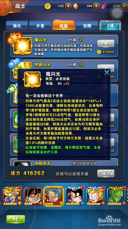 技能1魔闪光:对敌方怒气最高的造成伤害并生命压制。