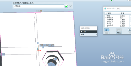 2).单击主菜单【插入】—【用户自定义特征】,在弹开的对话框中找到工作目录中刚刚建立的udf11,打开。弹出下图所示对话框。