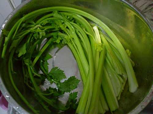将芹菜切碎,用榨汁机榨成芹菜汁