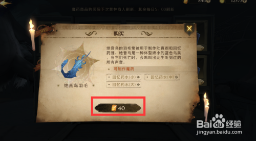 可以现在蓝色线索的“魔药事故”线索(小编是在2星的魔药事故中购买获得绝音鸟羽毛的)