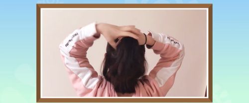 5捏住发尾,以第一个皮筋为圆心顺时针绕起来,皮筋扎起即可。