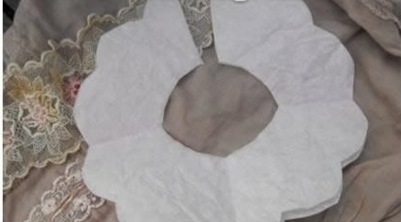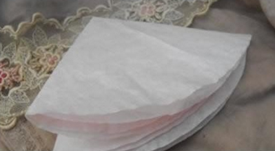 首先准备纸玫瑰的纸张,可以是皱纸张,将纸张叠落放置,进行对折。
