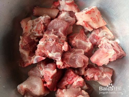 把猪尾肉放入炖煲里,加入中药材。并加入适量的水