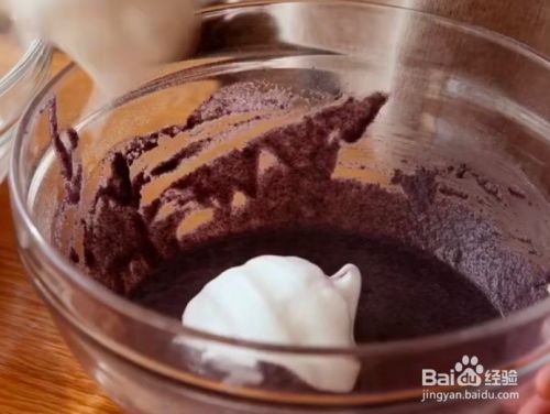 然后取三分之一的蛋白霜加入蛋黄液中,混合均匀。再倒回蛋白霜中,继续翻拌混合均匀。最后倒入6寸戚风模具中。震出气泡,盖上保鲜膜。