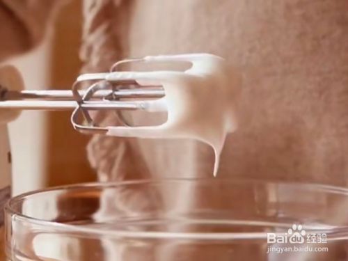 蛋白中挤入柠檬汁,打发,起泡后分三次加入白砂糖,打至气泡变细腻冒尖。