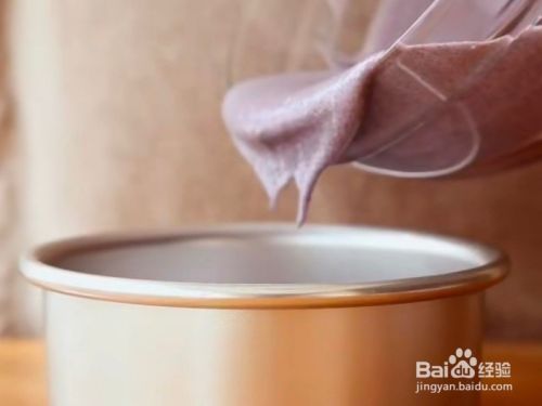 蛋黄中加入10克玉米油和90克牛奶,搅拌均匀。90克黑米粉和30克糯米粉混合过筛倒入蛋黄液中,一起搅拌混合均匀。