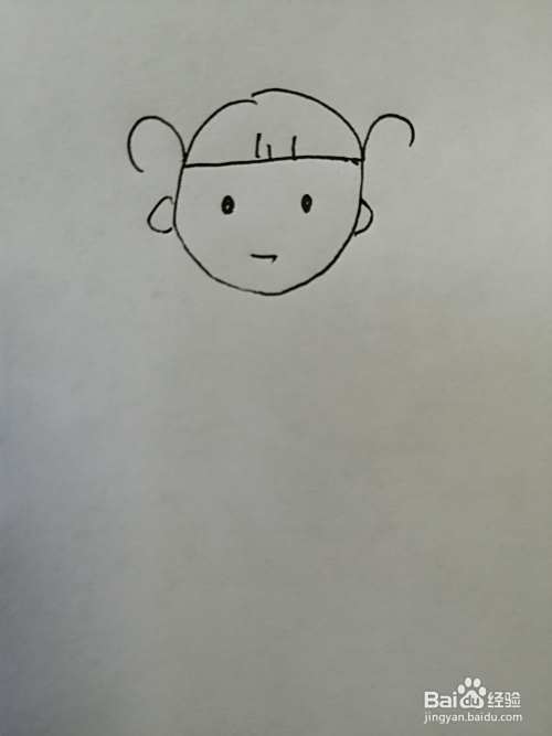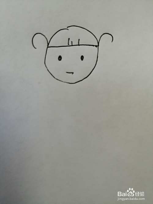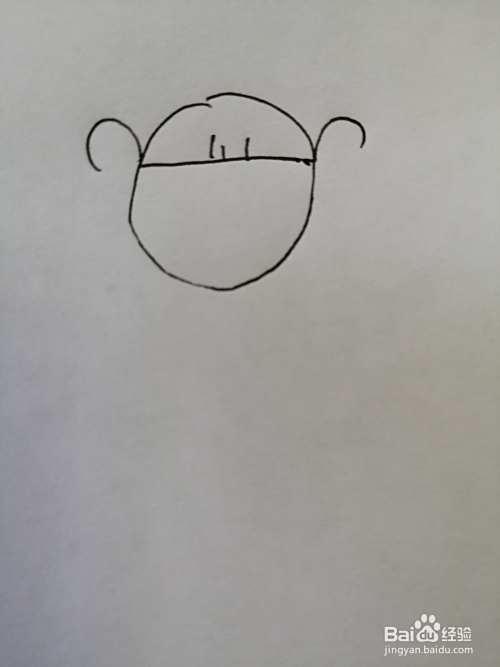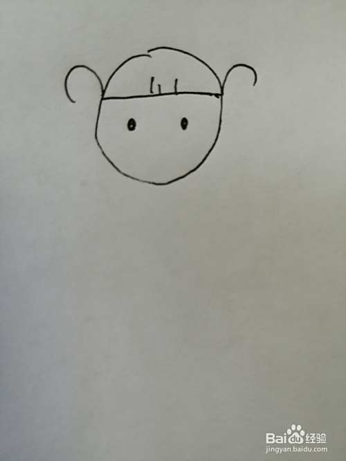 第三步,接着在小女孩的头部两边画出两只可爱的小耳朵,注意小耳朵的位置。