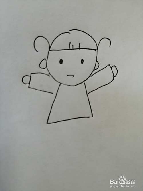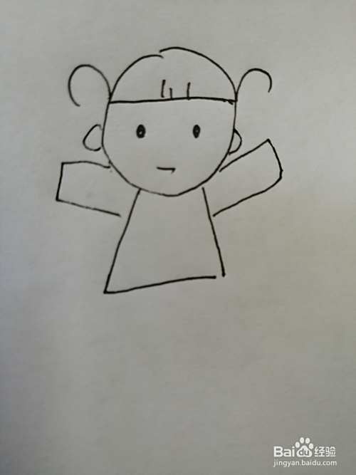 第二步,然后继续画出小女孩的两只眼睛和小嘴巴,小女孩的眼睛画法非常简单。