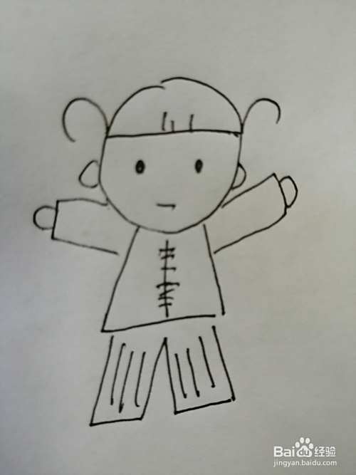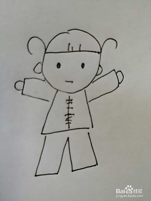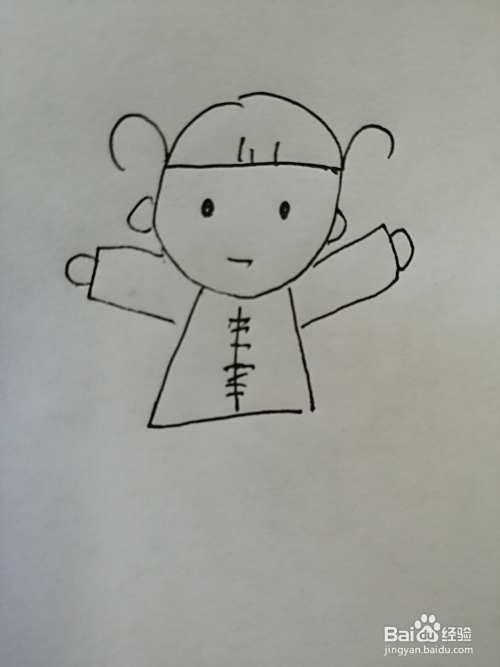第四步,然后把可爱的小女孩的衣服画出来,注意小女孩衣袖的画法。