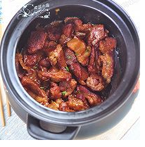 5. 将羊肉移入砂锅中,加入开水。盖上砂锅盖,小火炖半个小时。