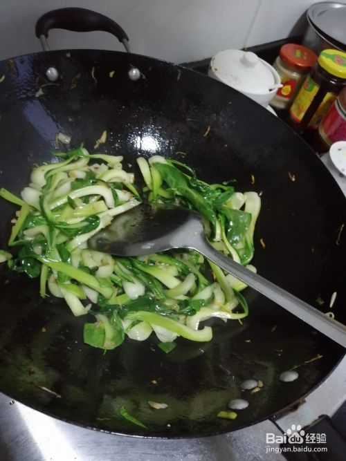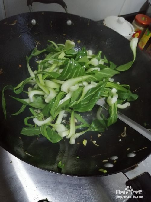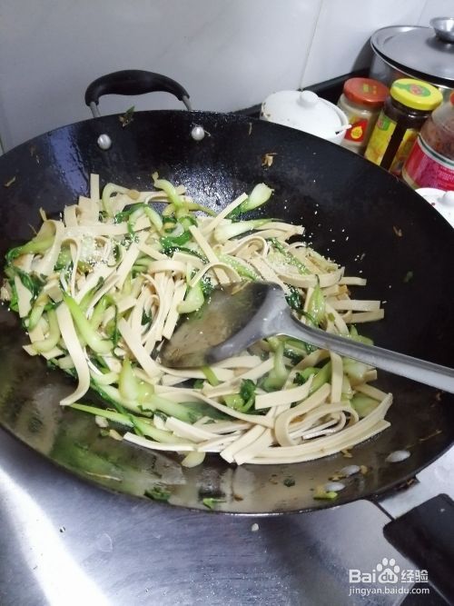 第七步,最后加入适量的盐翻炒起锅。美味的豆干炒青菜就做好了。