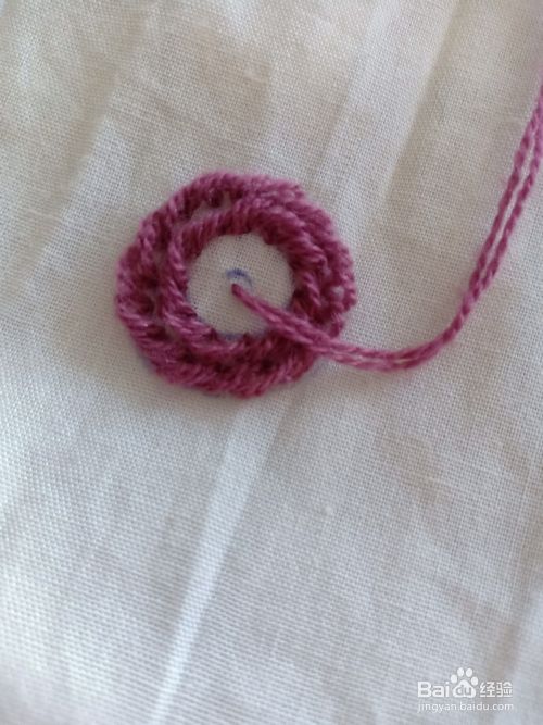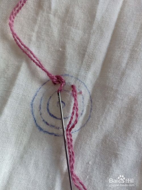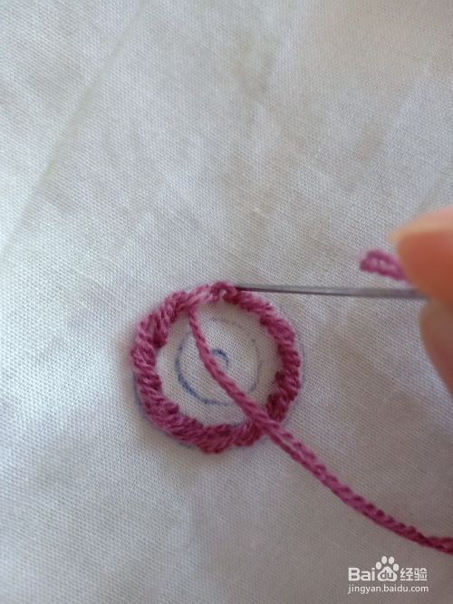 出针后拉出线,拉线的时候不要全部拉完,要留一个“线圈”出来,大小正好到外面的圆圈位置。