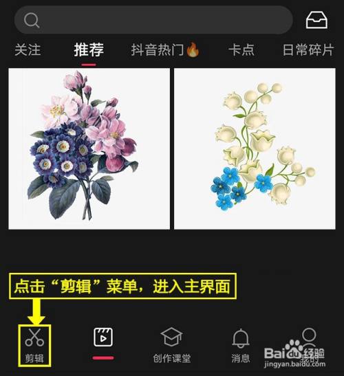 开始创作。点击“剪辑”主界面顶部的“开始创作”。