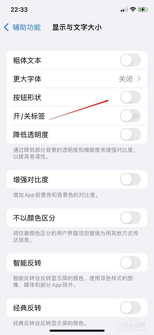 3、进入显示与文字大小设置,点击按钮形状即可