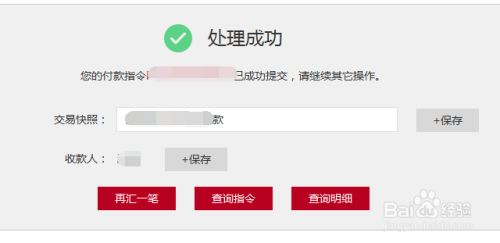 点击“确认”后,如果汇款成功,则会弹出“处理成功”,此时可以向收款人确认是否收到款项。