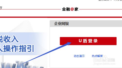 点击左边的“企业网上银行”后,点击“U盾登录”;