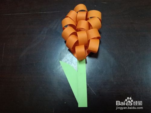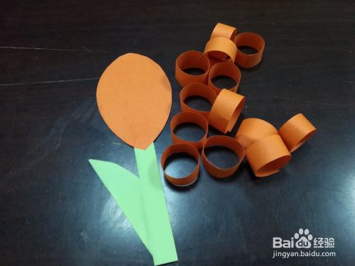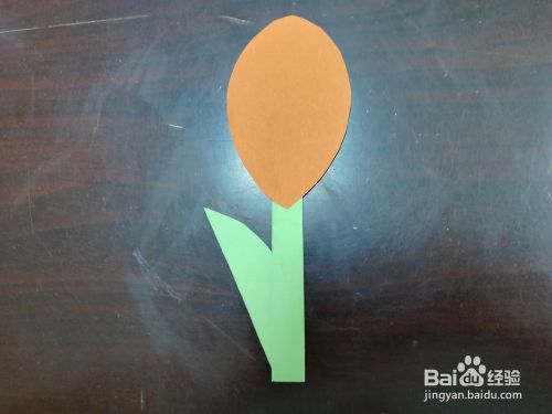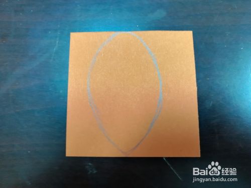 长方形纸取正方形纸的一半。我们用橙色纸做花朵,绿色纸做叶子。先取橙色长方形纸的一半,用铅笔简单勾勒一个椭圆,根据笔迹用剪刀裁剪出椭圆形状,作为花瓣的底托。手法娴熟的可以直接剪成椭圆哈。