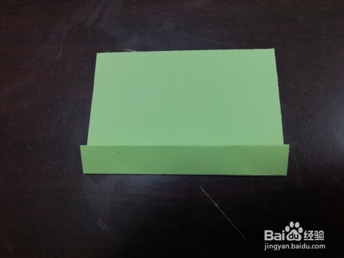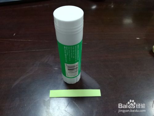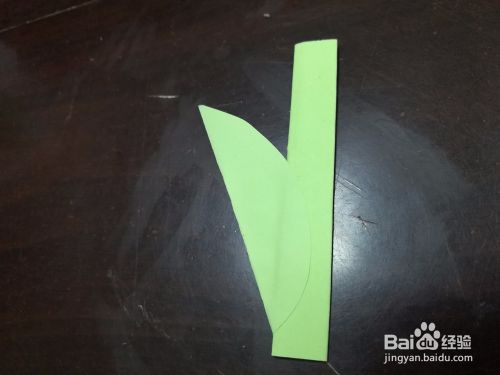 将绿色长方形纸从中间裁开,将其中的一半纸张从一边开始卷成一个长纸条,最后用固体胶粘住末尾。