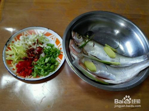 刁子鱼处理干净沥干水,里外抹盐,放上姜片葱段拌匀腌制2个小时以上。青红椒洗净剖开去籽切细丁,姜切丝,蒜切片,香葱分别切葱白段和葱花,干辣椒剪成段。