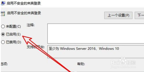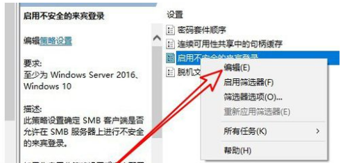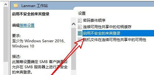 接着在右侧的窗口中找到“启用不安全的来宾登录”设置项。