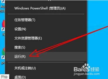 在Windows10系统桌面,右键点击屏幕左下角的开始按钮,在弹出菜单中选择“运行”的菜单项。