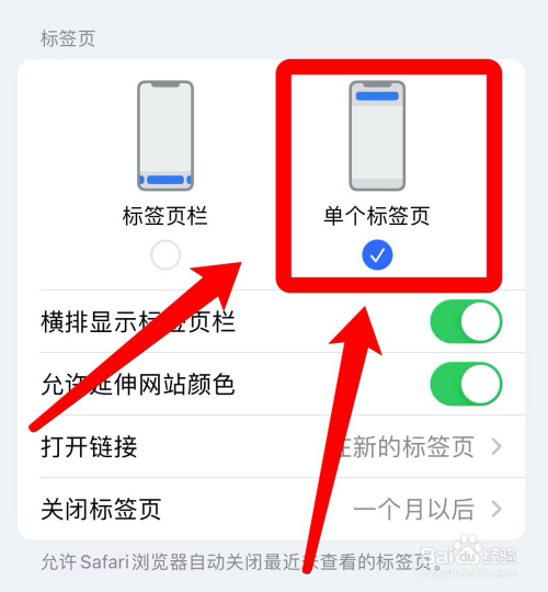 点开苹果手机Safari浏览器设置页面,选择单个标签页格式即可,以下是具体的操作步骤: