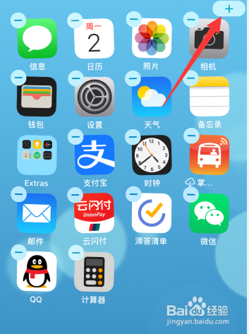 长按苹果手机桌面后,点击右上角“+”