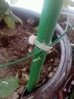等线管的油漆干了后,把管子插到花盆中,把铁丝用扎带捆在管子上。可以造出你喜欢的形状。如图中所示,这种是直接一根长铁丝绕上去用扎带捆上就是。