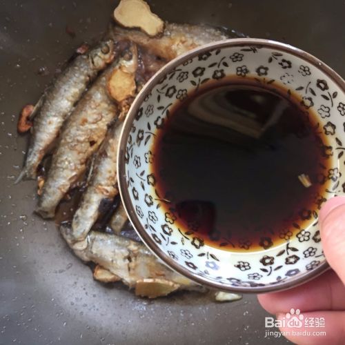待鱼煎至两面金黄,往锅中倒入适量的生抽,翻炒片刻就可以出锅了。